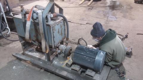 The power unit for the hydraulic jack (bottom photo) was recently rewired by volunteer Tom Gross in preparation of its' cleaning and testing also.