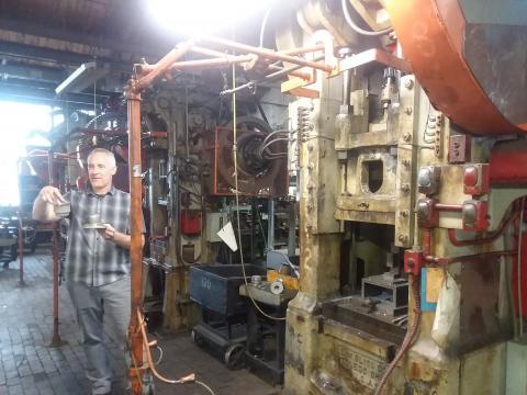 Much of Adlake's production is labor intensive due to the fact that many of their orders are for historic restorations. They try to save as much of the original hardware as possible when refurbishing window shades and locks, and that can include hand polishing and grinding.