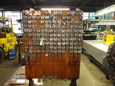 Because Midwest's interest is railroading, that was the primary focus of our tour. Adlake still manufactures many of the same products that they sold in the 1800's, such as lanterns, locks and keys, window shades and hardware. They also refurbish many of those items as well, preserving the historic integrity of the original component. In the past, Adlake has provided Midwest with quotes for the window shades on our historic passenger cars and we are looking at the possibility of having them quote replacing or refurbishing the door lock assemblies as well.