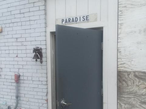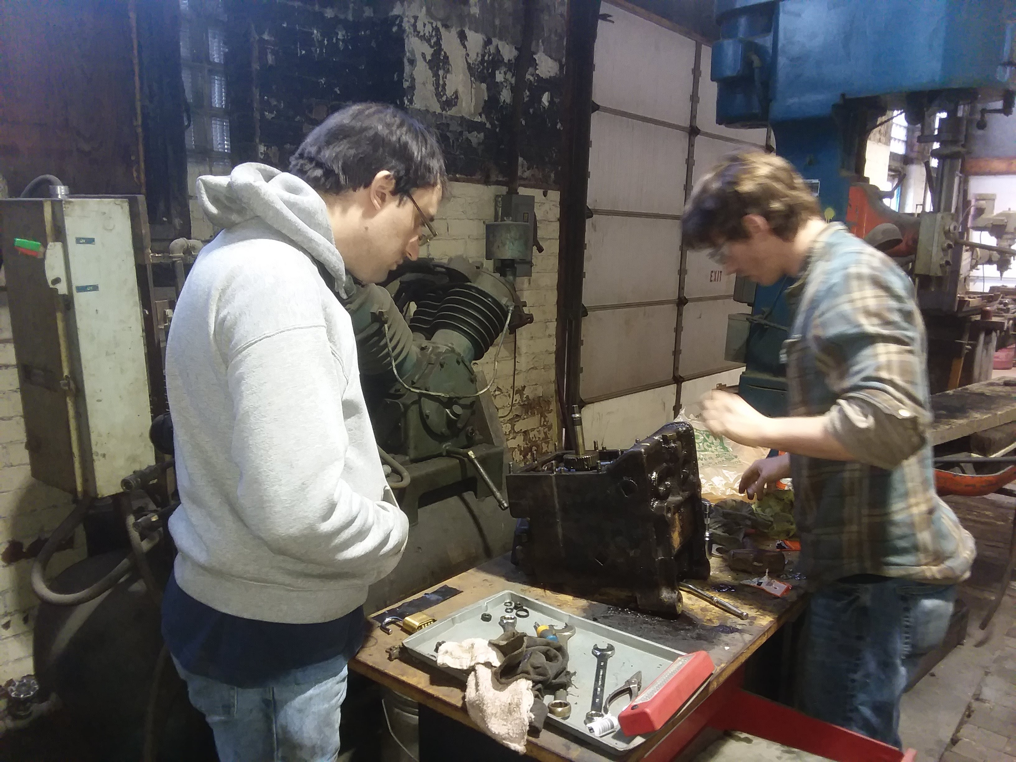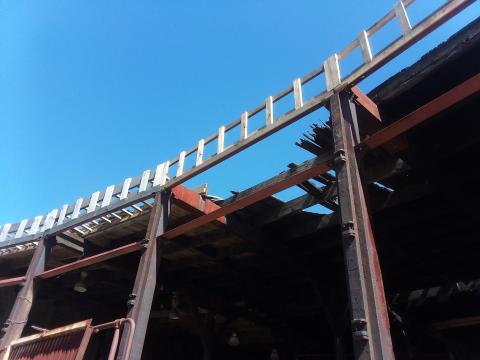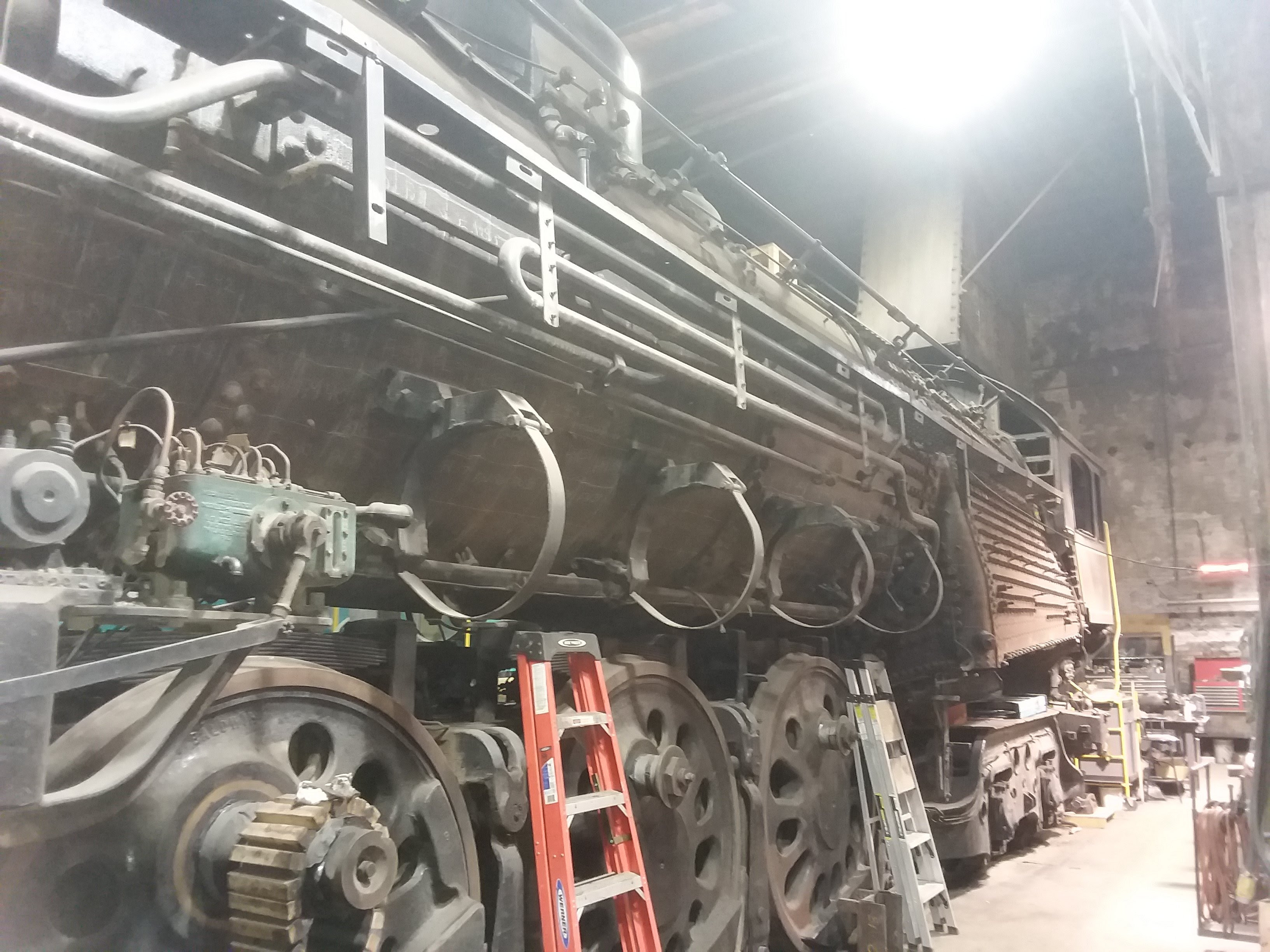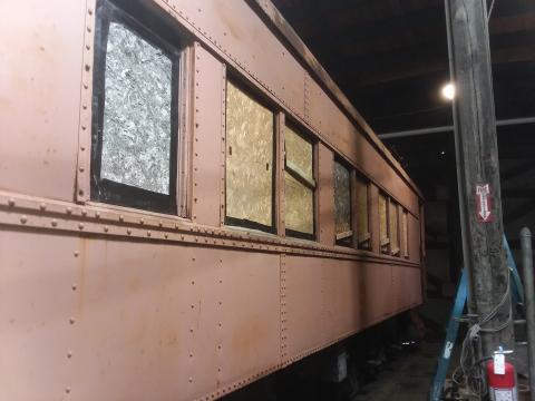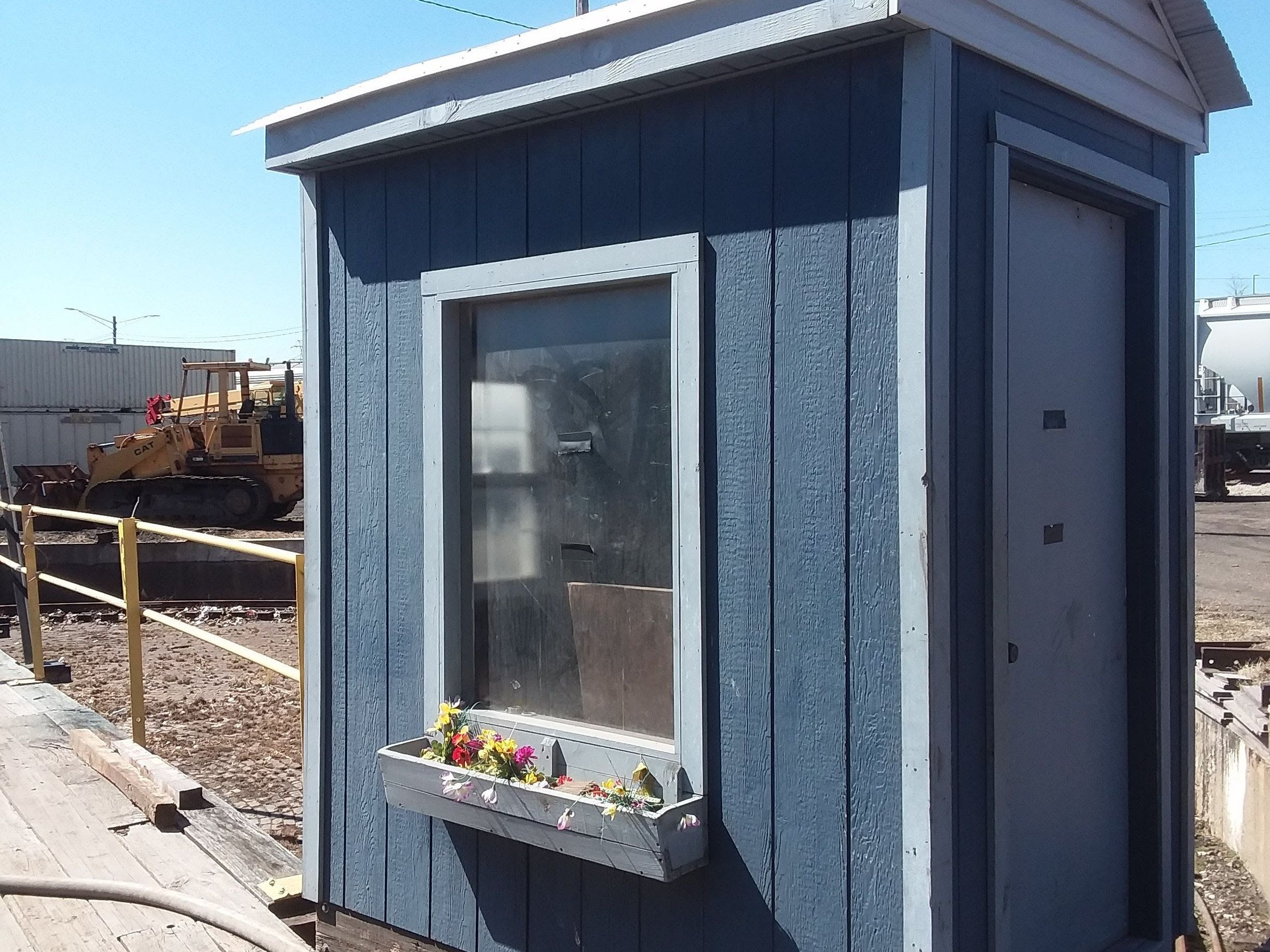 Nick Resar and Greg Antz work on the oiler for 4070 Palm Point being prepped for sand blasting The plastic flowers are blooming in the flower box of the turntable control hut work progresses on the structure restoration of stalls 6 through 10 This sign above the door welcomes all members and visitors to Midwest American Steam Railroad continues their restoration of 2100